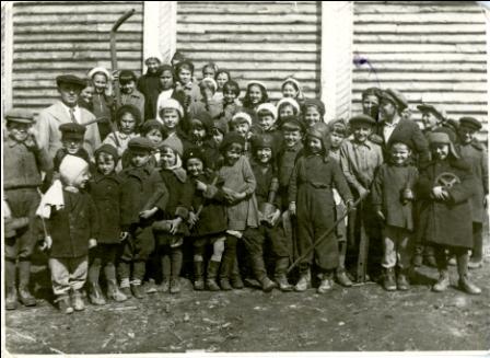 Женщины и дети, собирающие бутылки для фронта., п. Воркута, 1940-е годы. Фото из фондов ВМВЦ