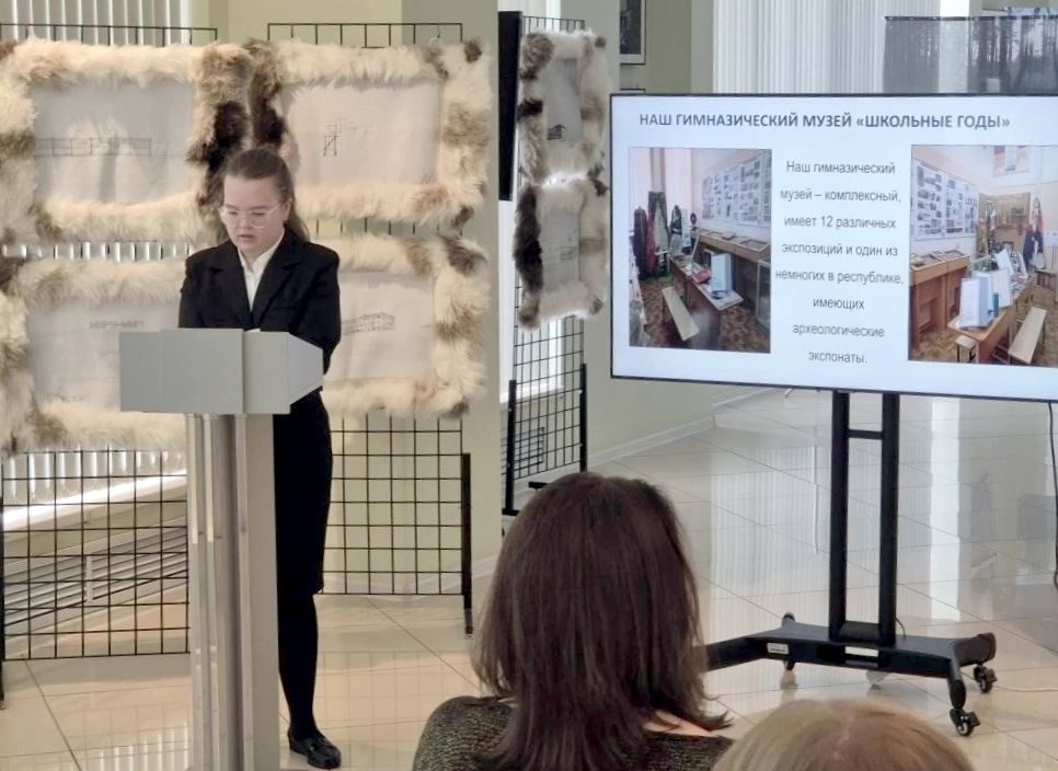 Еще один школьный музей представила десятиклассница Гимназии №2 Софья Приходько. Свое выступление она посвятила только одной, но по-настоящему уникальной экспозиции - "Археология родного края. Стоянка Мамонтова Курья". Раздел музея рассказывает о стоянке древних пещерных людей, обитавших в окрестностях Воркуты около 30 000 лет назад.