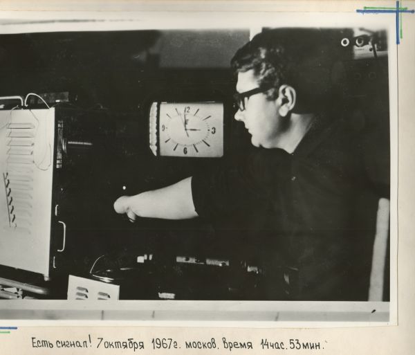 Первая передача из Москвы через спутник «Молния-1» на «Орбиту» шла до семи часов сорока пяти минут. Сеанс прошел успешно. Октябрь 1967г. Из архива Кравчук Екатерины Сергеевны