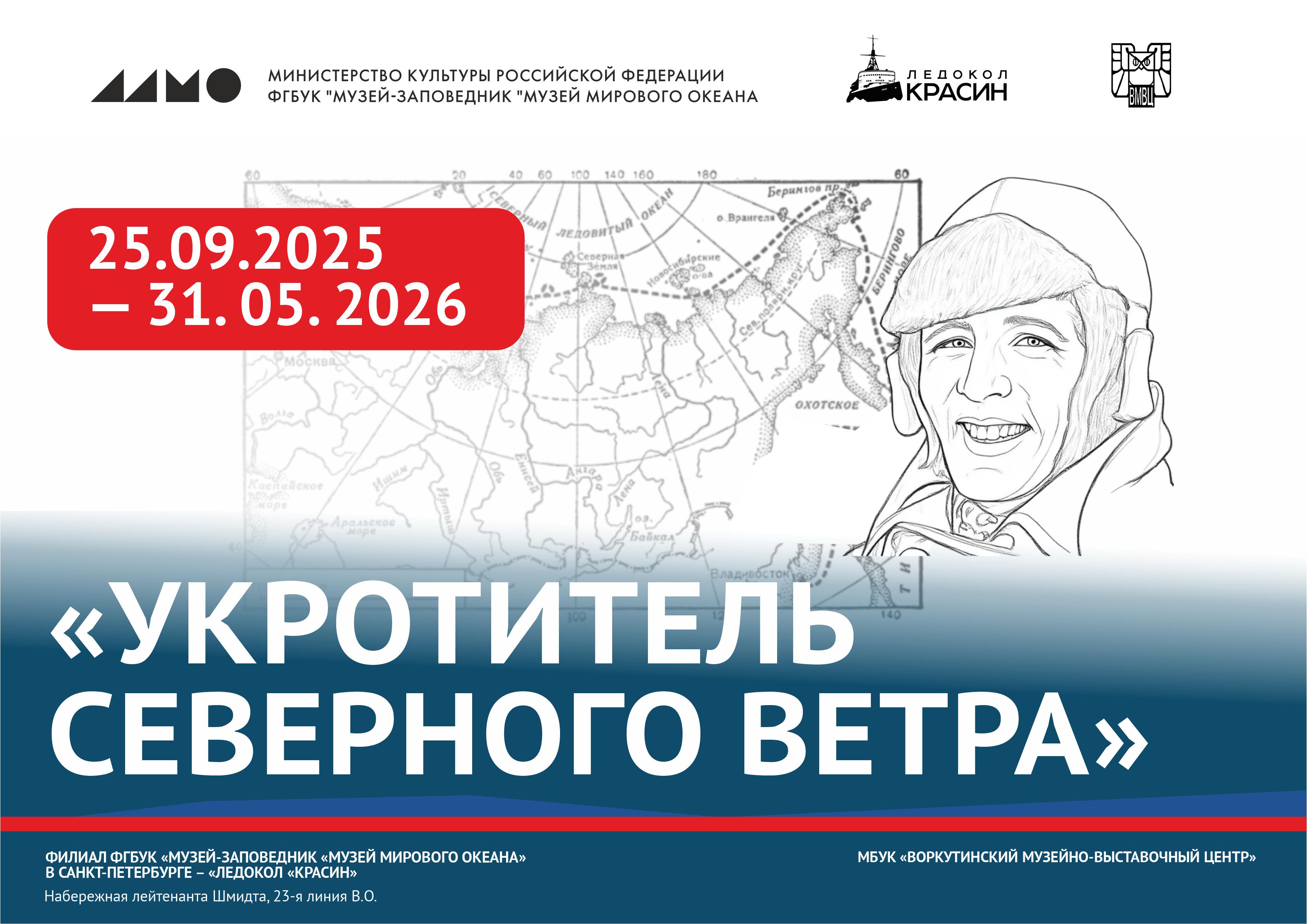 Будем рады видеть вас на открытии межмузейного проекта Воркутинского музейно-выставочного центра и филиала Музея Мирового океана в Санкт-Петербурге "Ледокол Красин", в честь 125-летия со дня рождения капитана-полярника Юрия Константиновича Хлебникова. Выставка пройдет в капитанской каюте на борту ледокола "Красин", которым капитан Хлебников командовал во время навигации 1964-1965 годов.