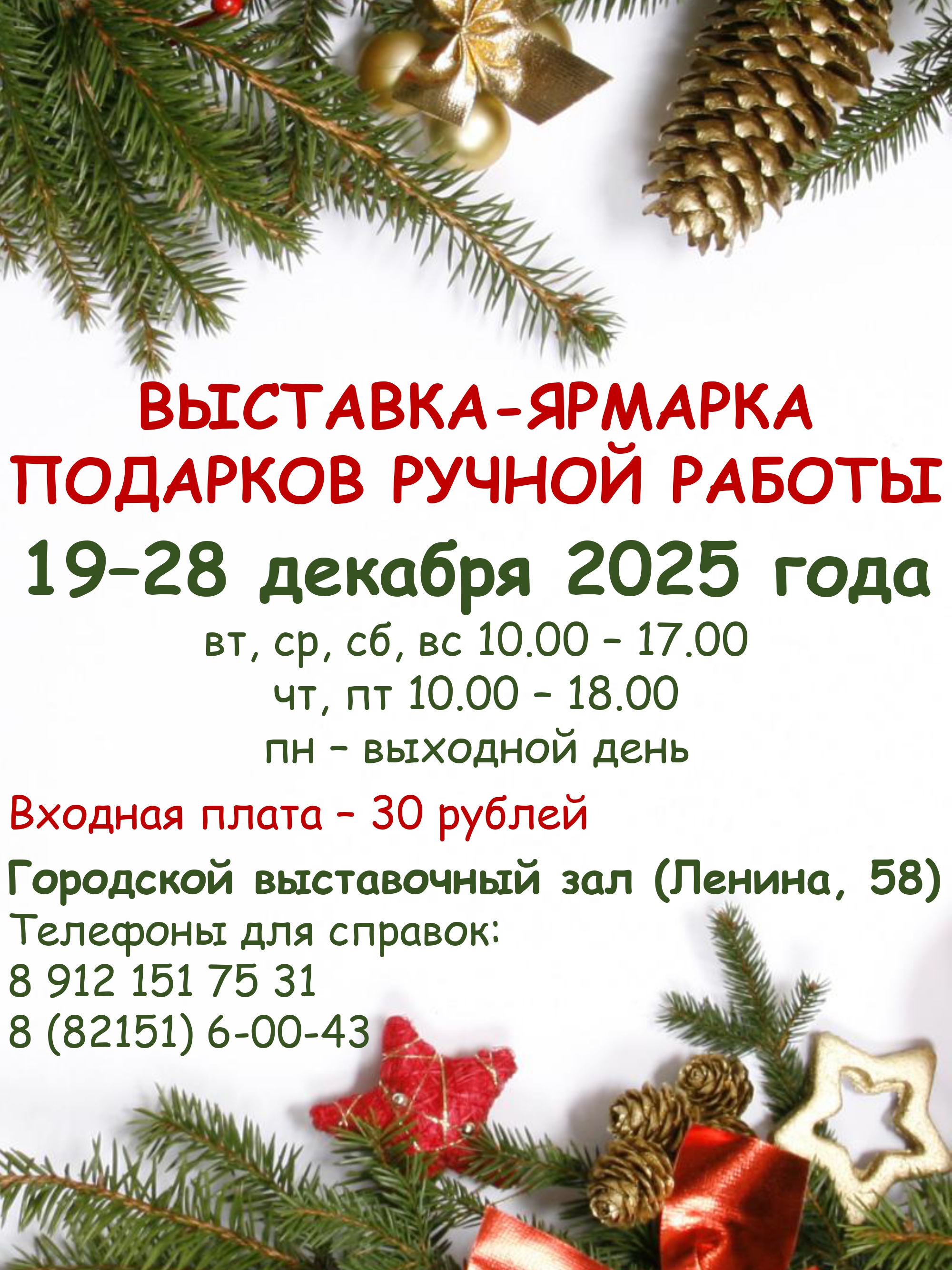 С 19 по 28 декабря в Городском выставочном зале состоится выставка-ярмарка подарков ручной работы.