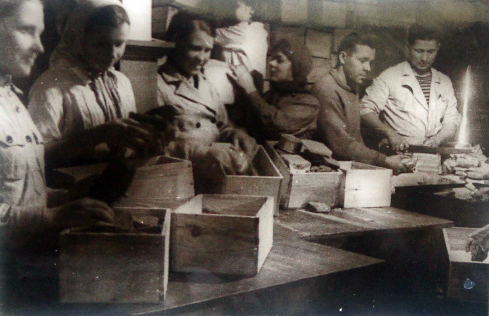 Учащиеся ремесленного училища №3 собирают посылки для красноармейцев, 1940-е годы. Фото из фондов ВМВЦ