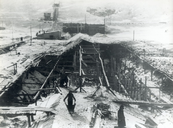 Негатив. Строительство плотины ТЭЦ. Воркута. 1940-е год. Федор Иванович Почкин. Основной фонд ВМВЦ 2297/762