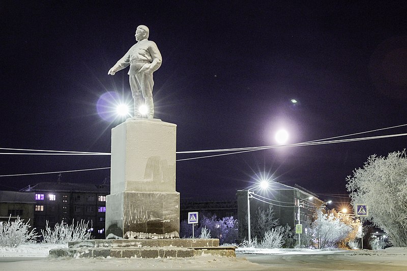 Отлитая из бронзы скульптура С.М. Кирову работы известного советского скульптора Матвея Генриховича Манизера - дар Ленинграда труженикам Воркуты к 10-летию промышленной эксплуатации Печорского угольного бассейна.