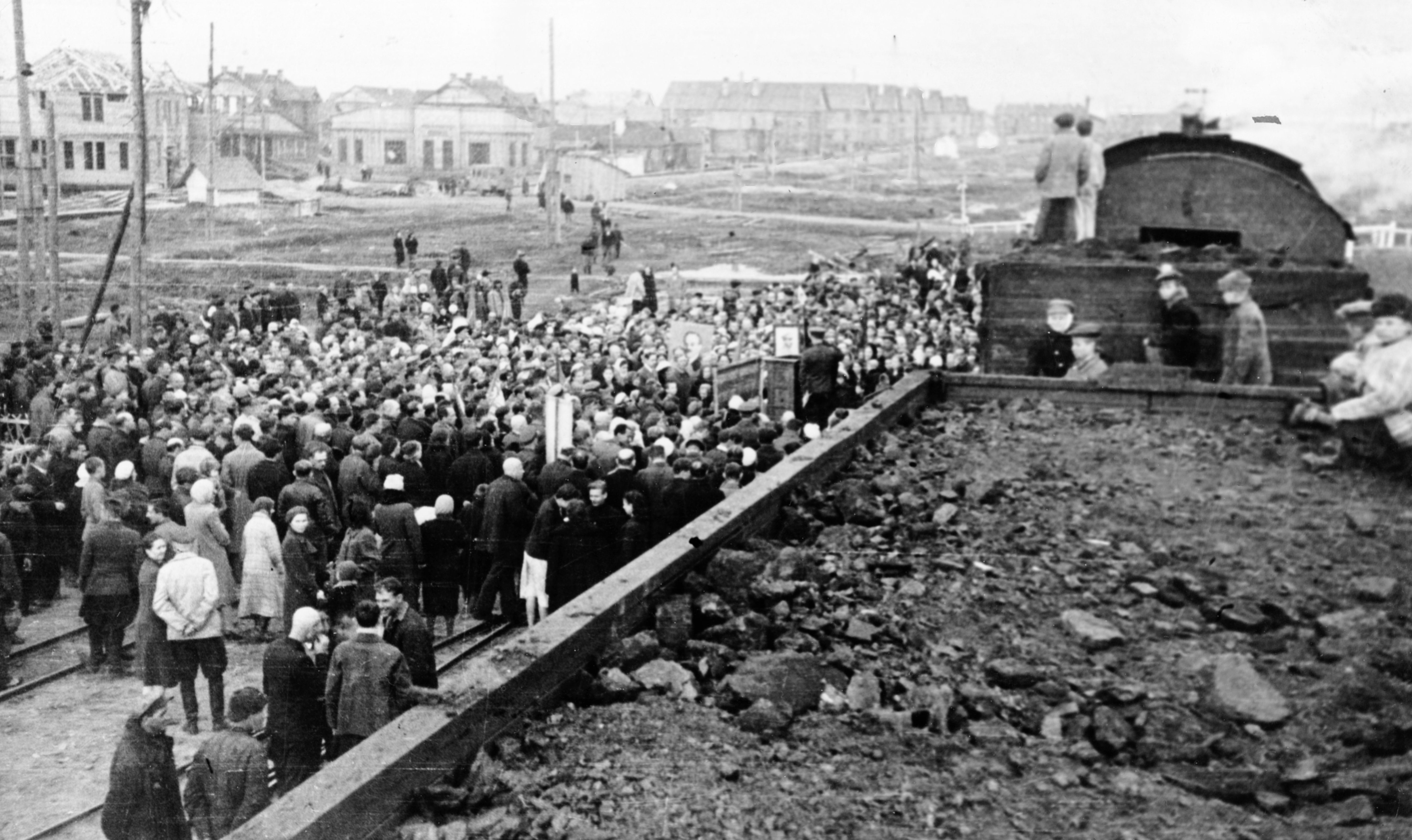 Митинг в связи с отправкой эшелона со сверхплановым углем в город Ленинград, июль-август 1943 года