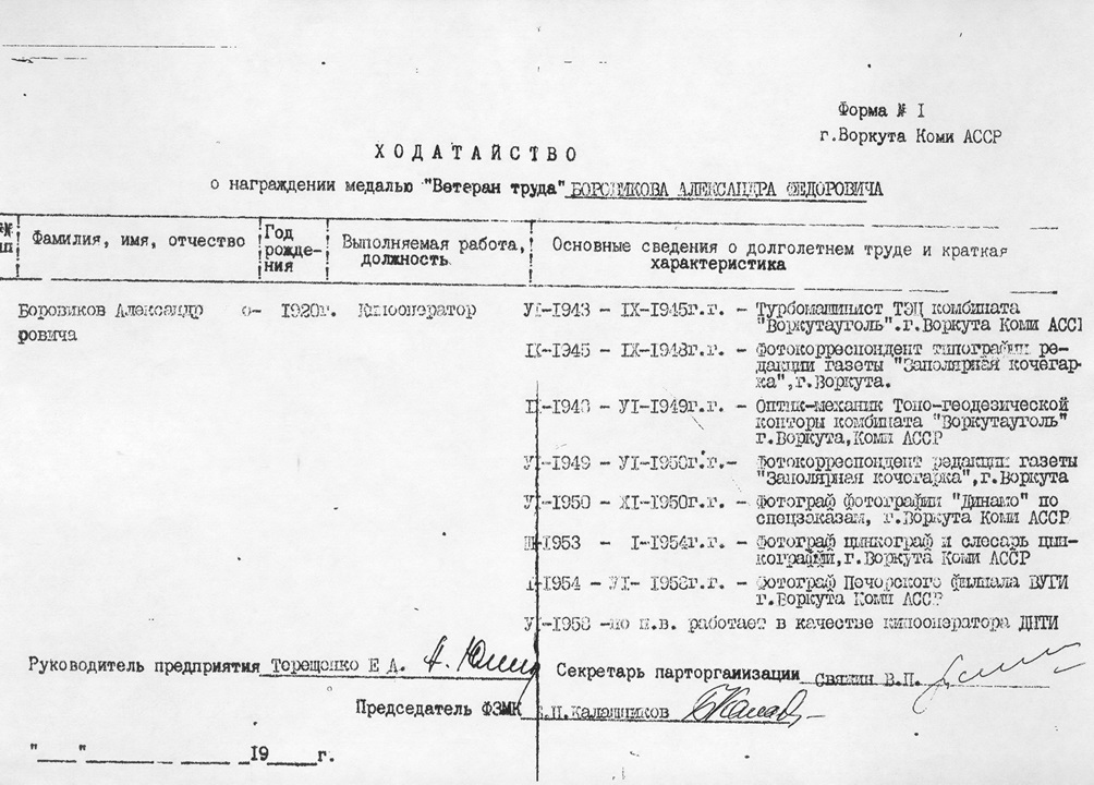 Фотографии А.Ф. Боровикова из фондовой коллекции МВУК «Воркутинский музейно-выставочный центр»