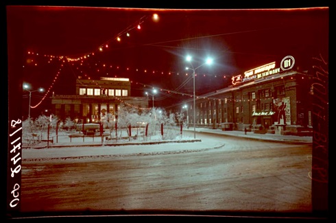 Цветной негатив фотокадра А.Ф. Боровикова «Панорама площади Мира», 1970 гг. из фондовой коллекции МВУК «Воркутинский музейно-выставочный центр»