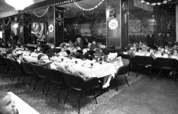 На фотографиях участники дня сладкоежки в ресторане «Север» на улице Мира – учащиеся начальных классов смотрят выступления артистов театра кукол. Январь 1986 года. Фото из открытых источников.