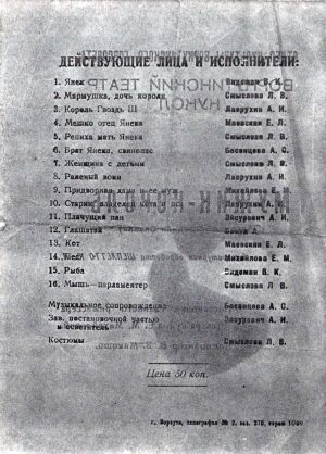 Первые попытки создания кукольного театра в Воркуте, как, впрочем, и в других городах и районах Коми, последовали сразу после начала амнистии… Освободившимся из заключения, осужденным по 58й статье артистам, найти себе работу было гораздо труднее, чем, например, шахтерам. Воркутинский музыкально-драматический театр, например, принял к себе лишь четверых…