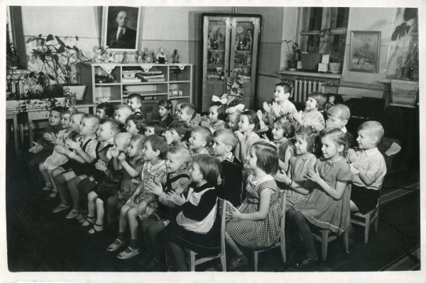 Дети младшей группы детского сада ТЭЦ – 2 на спектакле кукольного театра 1960-е годы. Фото из фондов ВМВЦ