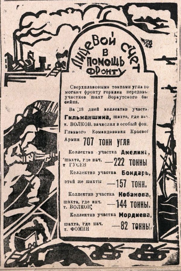 С 1 апреля 1943 года горняки Воркуты развернули предмайское соревнование по повышению производительности труда. Его первые промежуточные итоги в газете «Заполярная кочегарка» были опубликованы уже 6 апреля 1943 года.