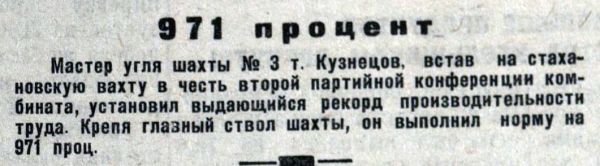 А 27 августа 1943 года крепильщик Спирин выполнил сменную норму на рекордные 730 процентов.