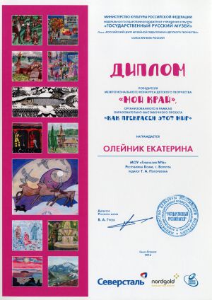 Участники выставки получили ДИПЛОМ победителя Межрегионального конкурса детского творчества «Мой край», организованного в рамках образовательно-выставочного проекта «Как прекрасен этот мир».